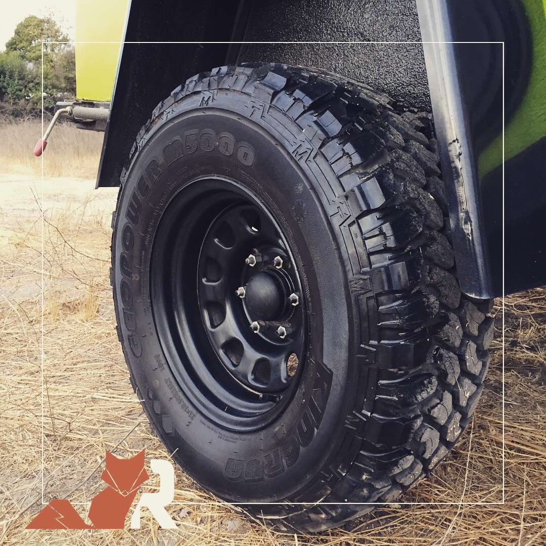 Equipado con llantas 15x8” y neumáticos MT 31”, suspensión de ballestas y eje para 750 Kg. Gran despeje con ángulos de entrada y salida suficientes para acceder a caminos fuera de ruta.